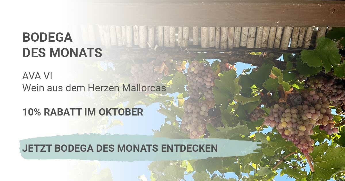 *Wir stellen Dir in dieser Rubrik jeden Monat eine besondere Bodega Mallorcas vor, auf die es dann einen Monat lang einen Rabatt gibt. Dieser Rabatt bedeutet im März z.B. 3 % Nachlass, im Juli 7 % und im Monat Dezember schmackhafte 12 % auf alle Weine der jeweiligen Bodega. Dieser Rabatt gilt für Bestellungen ab 50€ von Weinen der Bodega des Monats.